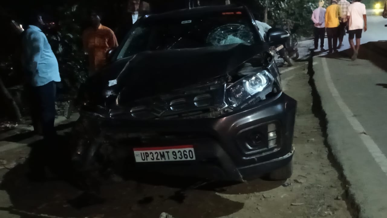लम्भुआ रेलवे क्रॉसिंग तोड़कर निकली तेज रफ्तार ब्रेज़ा कार मारी बाइक को टक्कर