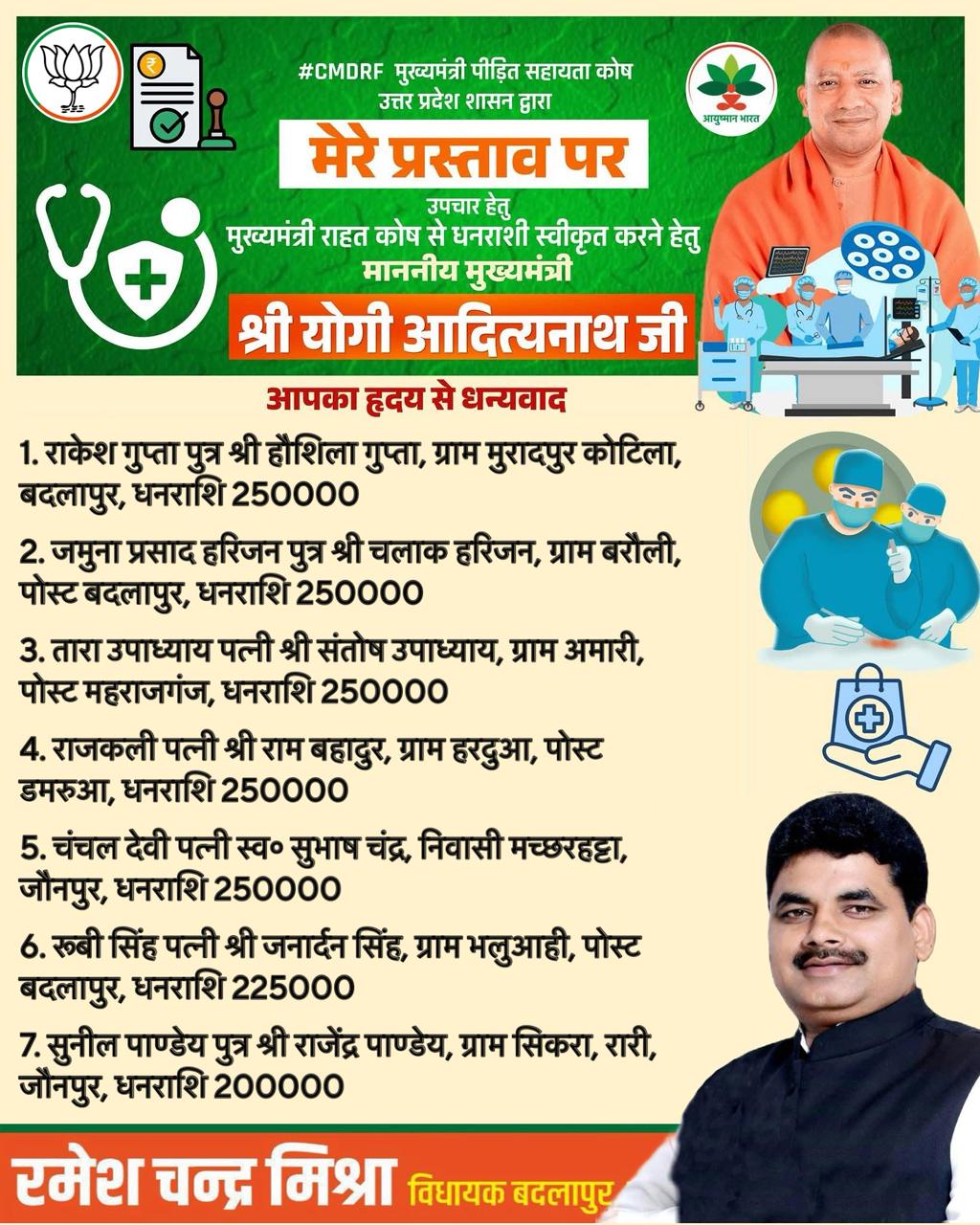 मुख्यमंत्री राहत कोष से विधानसभा क्षेत्र के 27 मरीजों को मिली आर्थिक सहायता