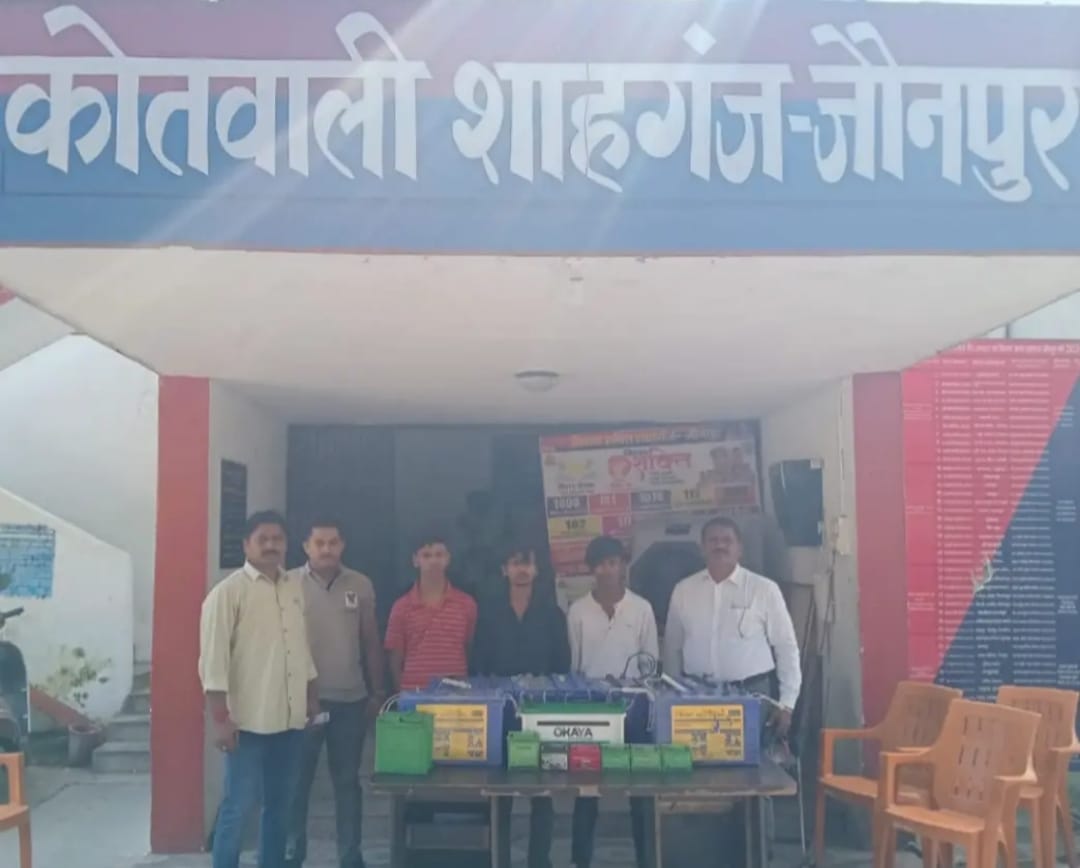 शाहगंज थाना पुलिस द्वारा तीन नाबालिग अभियुक्तों को चोरी की 17 ई-रिक्शा की बैटरी के साथ गिरफ्तार किया गया। अपर पुलिस अधीक्षक (शहर) आयुष श्रीवास्तव ने बताया कि मुखविर की सूचना पर गुरुवार को ऋषभ कुमार निवासी अंबेडकर नगर भादी थाना शाहगंज, शिवम अग्रहरि निवासी उसरा भादी थाना शाहगंज, सिद्धार्थ कुमार निवासी अंबेडकर नगर भादी थाना शाहगंज जौनपुर को काशीराम आवास के पास से गिरफ्तार किया गया है|