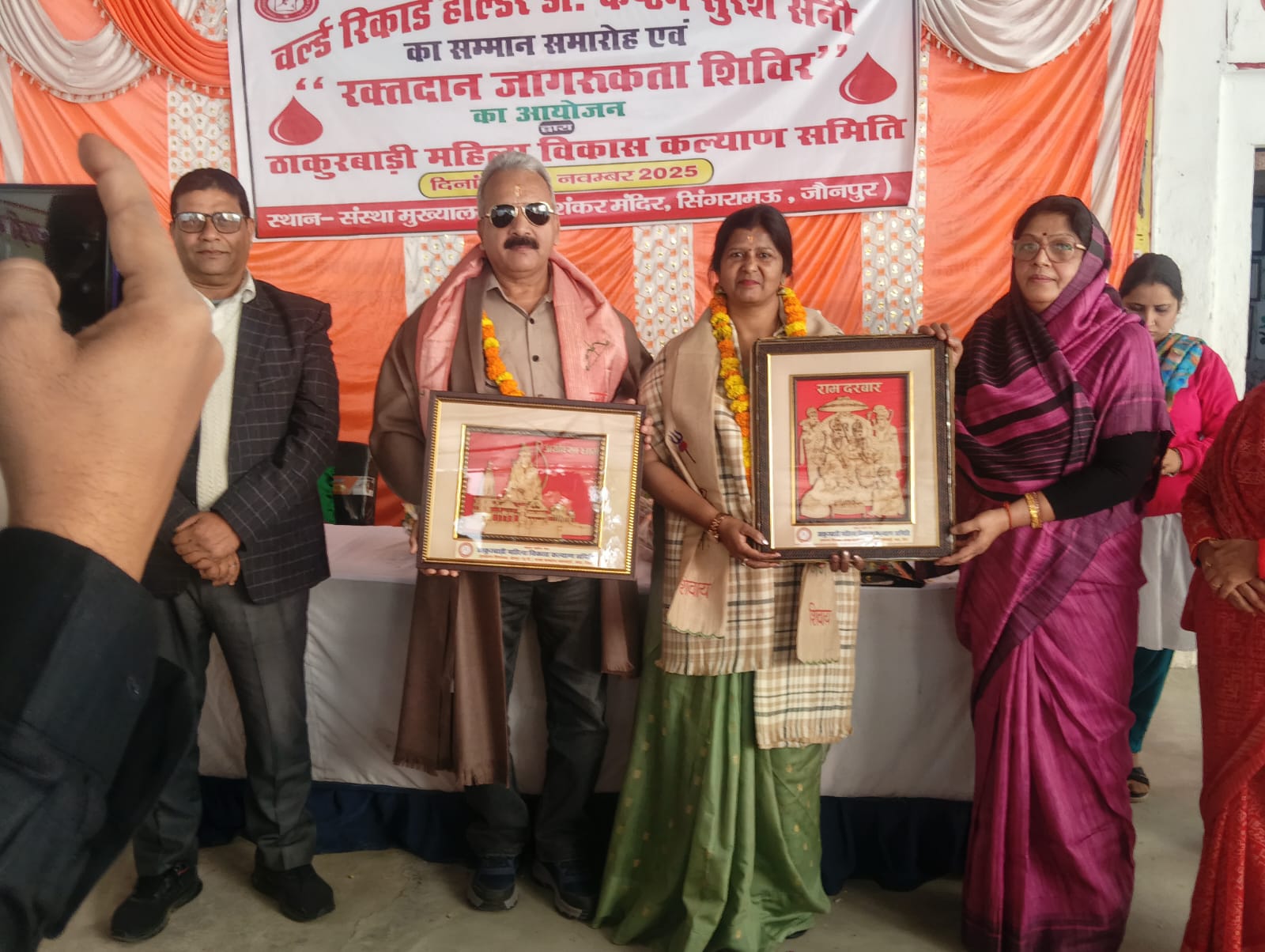 सिंगरामऊ। ठाकुरबाड़ी महिला विकास कल्याण समिति के मुख्यालय पर मंगलवार को रक्तदान जागरूकता शिविर का आयोजन किया गया। कार्यक्रम का उद्देश्य समाज में रक्तदान के प्रति जागरूकता फैलाना और इससे जुड़ी भ्रांतियों को दूर करना रहा। शिविर मुख्य रूप से वर्ल्ड रिकॉर्ड होल्डर, 252 बार रक्तदान कर अंतरराष्ट्रीय-राष्ट्रीय सम्मान प्राप्त तथा पद्मश्री के लिए चयनित कैप्टन डॉ. सुरेश सैनी के सम्मान में आयोजित किया गया।