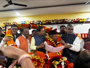 कार्य कार्यकर्ताओं ने आतिशबाजी और मिठाई वितरण के साथ नए जिलाध्यक्ष का स्वागत किया उन्हें शॉल और फूल माला से सम्मानित भी किया गया l