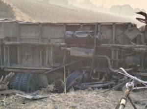 दो ट्रकों की आमने-सामने की टक्कर में, एक चालक की मौत, दूसरे की स्थिति गंभीर