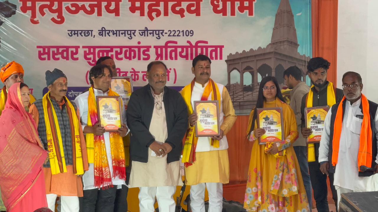 उमरछा : लिंग थापि विधिवत करि पूजा। सिव समान प्रिय मोहि न दूजा।। की पावन चौपाइयों के साथ मृत्युञ्जय महादेव धाम उमरछा में आयोजित सस्वर सुंदरकाण्ड प्रतियोगिता का प्रदोष तिथि का भव्य समापन हुआ। इस अवसर पर निर्मल मानस ग्रुप, औरैला मड़ियाहूं के कलाकारों द्वारा प्रस्तुत मंत्रमुग्ध कर देने वाले पाठ के उपरांत एक विशेष सम्मान समारोह का आयोजन किया गया।