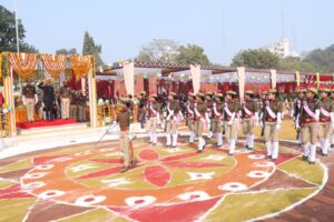 इस अवसर पर पुलिस की विभिन्न टुकड़ियों ने अनुशासित और आकर्षक परेड प्रस्तुत की।