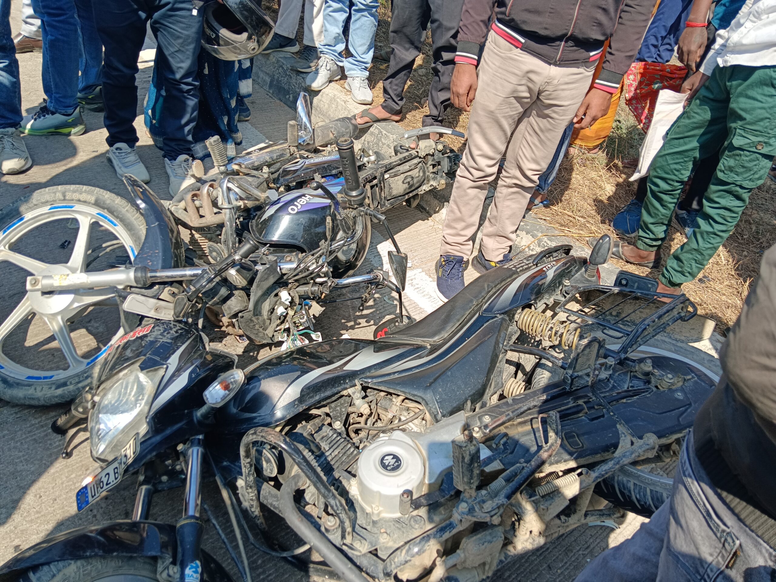 टक्कर इतनी जबरदस्त थी कि बाइक घसीटते हुए आगे बढ़ी और दूसरी बाइक से जा टकराई। इससे दूसरी बाइक पर सवार अमन (20), निवासी नारायणपुर, बदलापुर भी घायल हो गया।