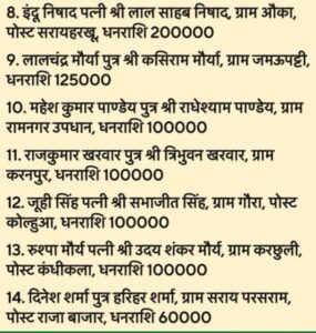 2. राजकुमारी शुक्ला पत्नी रामद्वारा शुक्ला, ग्राम गुनौली – ₹50,000