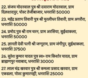 5. लाल चंद्र खरवार पुत्र कमला प्रसाद खरवार, डला कुमारपट्टी – ₹2,50,000,