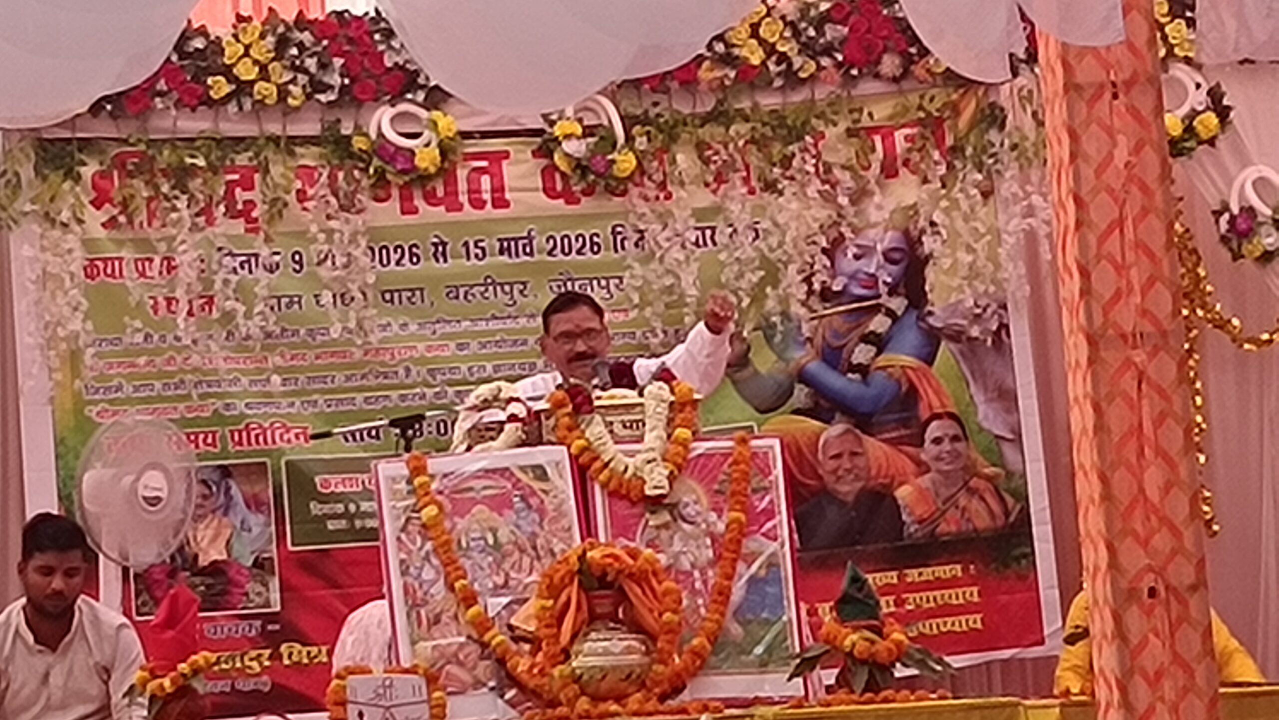 कथा व्यास के रूप में वृंदावन धाम से पधारे परम पूज्य भागवत कथा मर्मज्ञ राम बहादुर मिश्रा ने श्रीमद्भागवत कथा के महत्व पर विस्तार से प्रकाश डाला। उन्होंने कहा कि श्रीमद्भागवत कथा आम के पके हुए फल के समान है, जिसका रसपान करने से श्रोता आध्यात्मिक आनंद की अनुभूति करता है। जिस प्रकार तोता हमेशा पके हुए फल को ही चोंच मारता है और उसका आनंद लेता है, उसी प्रकार भागवत कथा का श्रवण करने से मनुष्य को ज्ञान और वैराग्य की प्राप्ति होती है।