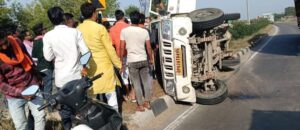 *बक्शा हाइवे पर टायर फटने से अनियंत्रित पिकअप पलटा,चालक सुरक्षित*