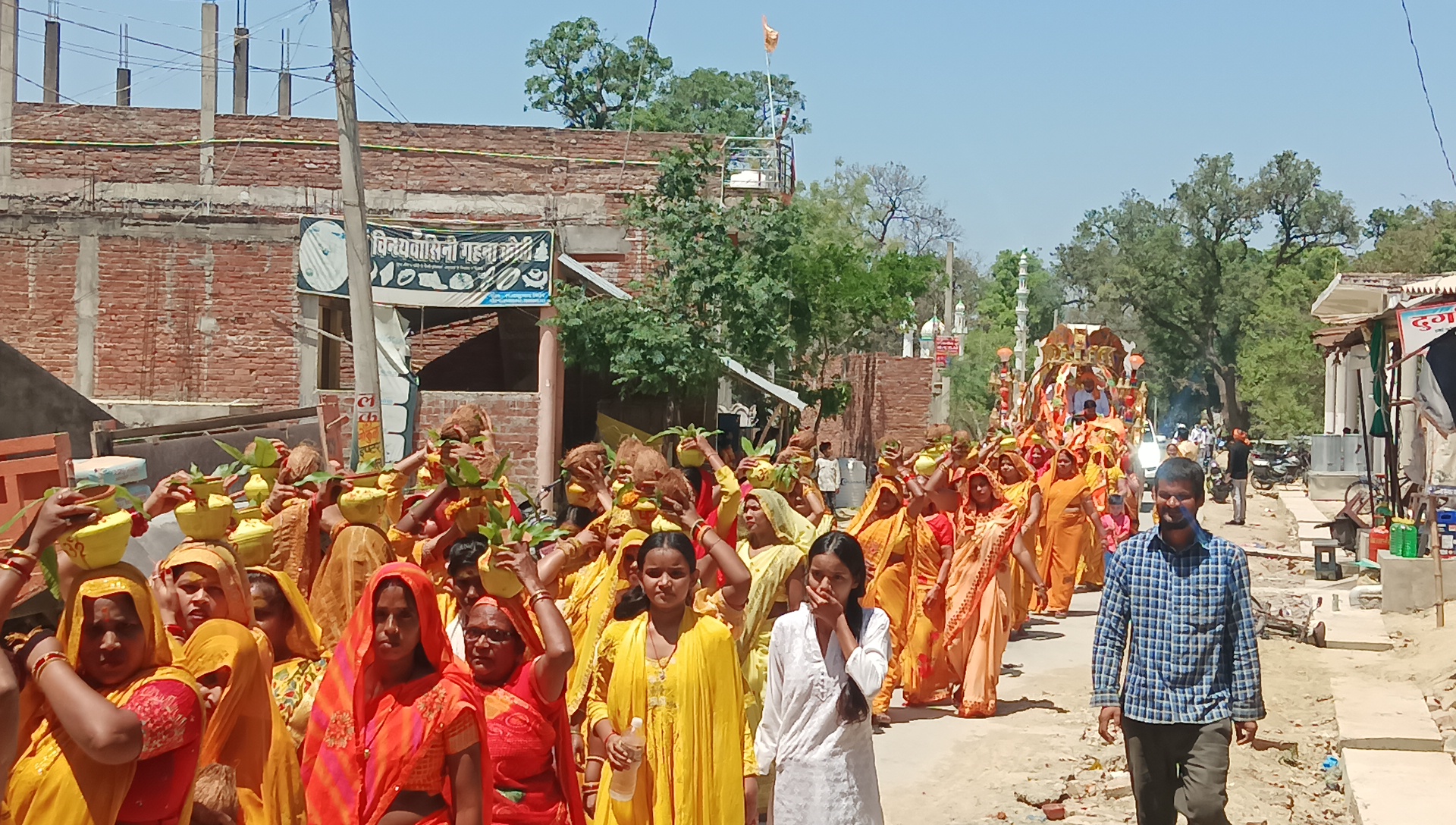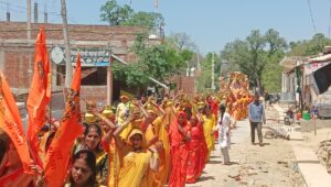 कलश यात्रा के दौरान महिलाओं ने सिर पर कलश धारण कर पूरे गांव में भ्रमण किया। मुख्य यजमान प्रेम जायसवाल एवं उनकी धर्मपत्नी चंद्रकला ने श्रीमद्भागवत महापुराण की पवित्र ग्रंथ को सिर पर धारण कर यात्रा का नेतृत्व किया।