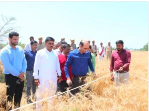 प्रतापगढ़ के जिलाधिकारी शिव सहाय अवस्थी ने तहसील सदर के भदौसी गांव में किसान हौसला प्रसाद के खेत में गेहूं की फसल की क्रॉप कटिंग कराई। उन्होंने स्वयं खेत में उतरकर फसल उत्पादकता का आकलन किया। इस प्रक्रिया के दौरान जिलाधिकारी ने स्वयं गेहूं की फसल काटी और पूरे कार्य का निरीक्षण किया। क्रॉप कटिंग का यह प्रयोग भारत सरकार द्वारा विकसित सीसीई एग्री ऐप के माध्यम से पारदर्शी तरीके से किया गया, ताकि आंकड़ों की सटीकता बनी रहे। रैंडम नंबर के आधार पर 10 मीटर भुजा वाले समबाहु त्रिभुज क्षेत्र में फसल कटाई की गई। जिससे 20.550 किलोग्राम उपज मिली। इसके आधार पर गेहूं की उत्पादकता 47.47 कुंतल प्रति हेक्टेयर आंकी गई। यह प्रक्रिया प्रधानमंत्री फसल बीमा योजना (PMFBY) के तहत अत्यंत महत्वपूर्ण है। इसी के आधार पर किसानों को फसल क्षति का मुआवजा निर्धारित किया जाता है मौके पर उपस्थित किसानों से संवाद करते हुए जिलाधिकारी ने उन्हें कृषि से संबंधित विभिन्न सरकारी योजनाओं की जानकारी दी और उनका लाभ उठाने के लिए प्रोत्साहित किया। उन्होंने किसानों से अपील की कि वे अपनी गेहूं की उपज सरकारी क्रय केंद्रों पर ही बेचें, ताकि उन्हें न्यूनतम समर्थन मूल्य (MSP) का पूरा लाभ मिल सके इसके अतिरिक्त, उन्होंने किसानों को पराली न जलाने की सलाह दी। जिलाधिकारी ने कहा कि फसल अवशेषों का उपयोग नजदीकी गौशालाओं में पशुओं के चारे के रूप में किया जाना चाहिए। इससे पर्यावरण संरक्षण के साथ-साथ पशुपालन को भी बढ़ावा मिलेगा।