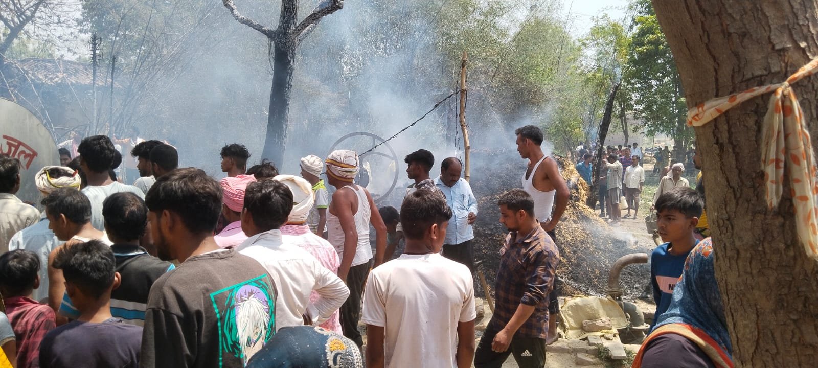 जिसमें 5 बकरी जलकर मर गई और एक गाय व एक भैंस झुलस गई 2 मोटरसाइकिल काफी जल गई ,3 साइकिल 4 तख्ता गेहूं ,चावल, और गेहूं के 400 बोझ में का भूसा भी जलकर खाक हो गया।